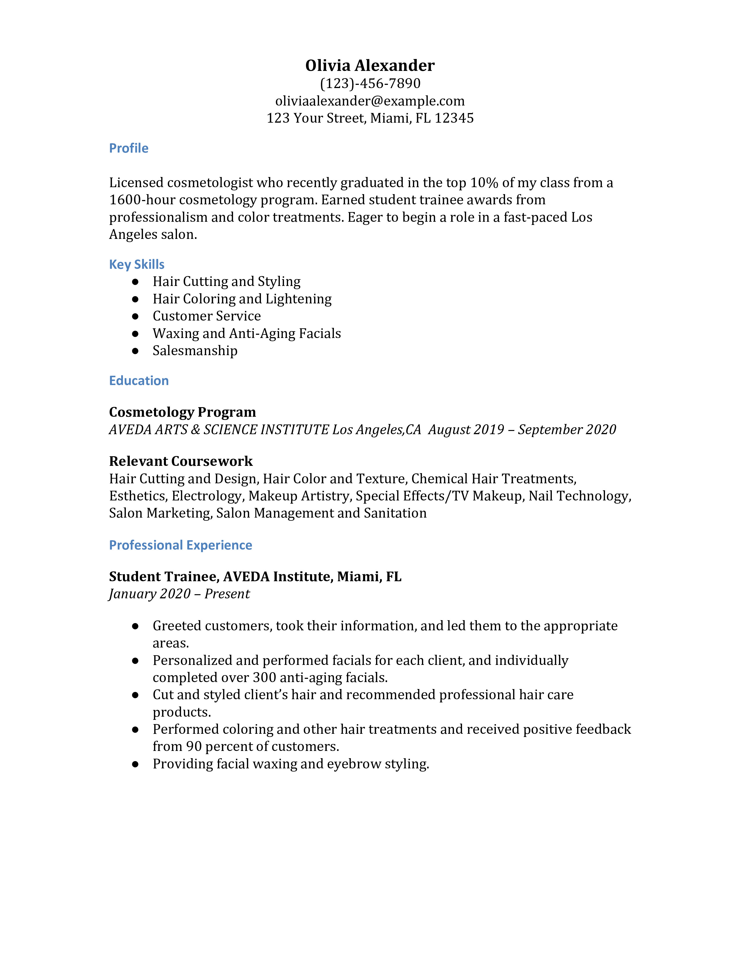 Cosmetology Resume Samples All Experience Levels Resume Com Resume Com